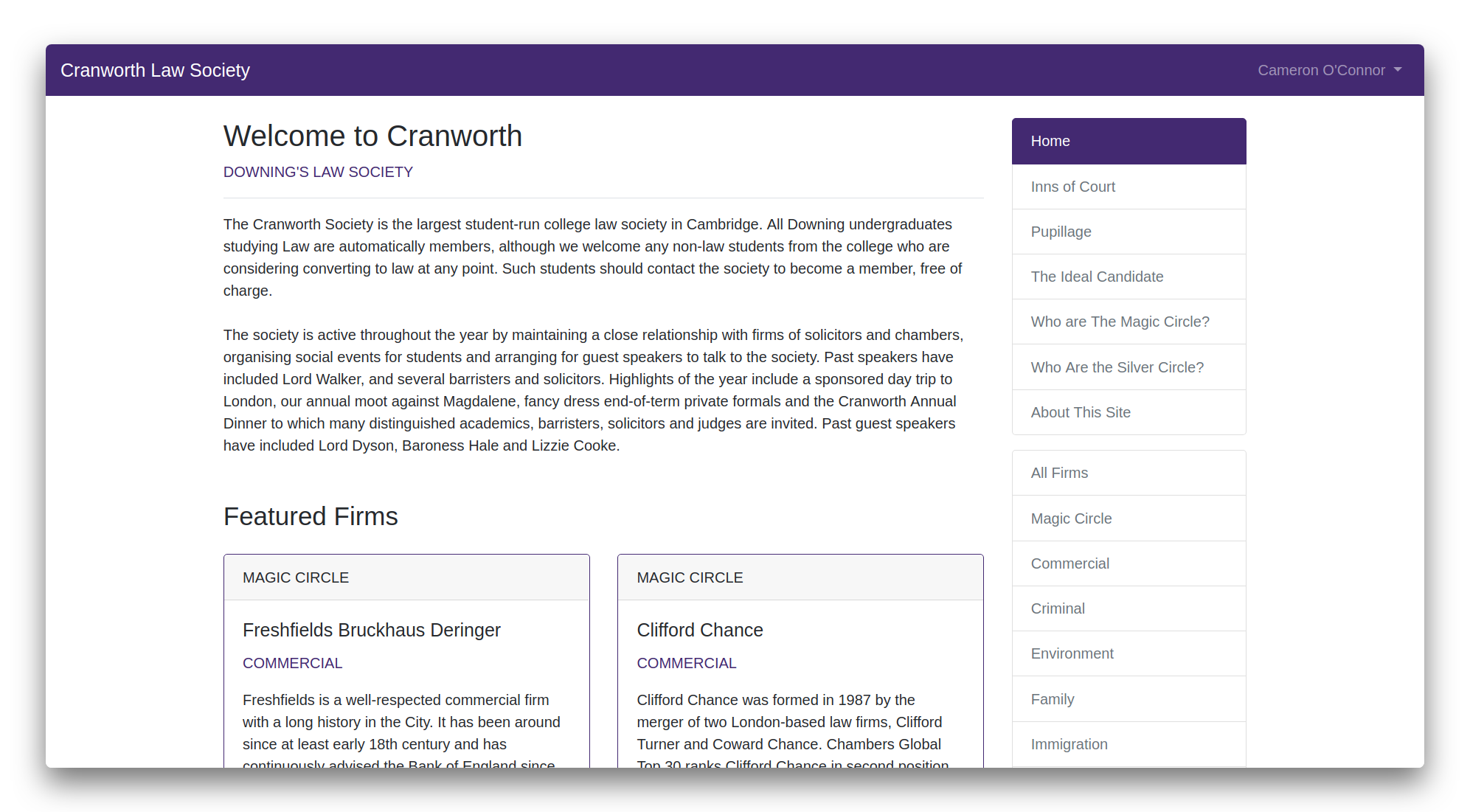 I created a web application using Django to serve Downing College's Cranworth Law Society website.